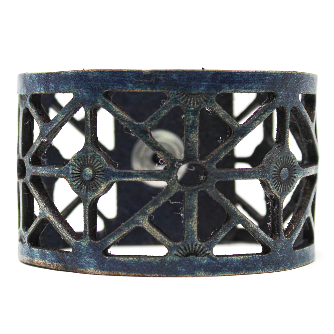 Simple, but elegant line of thick 100% leather Cuffs with laser engraved and cut designs featuring our...