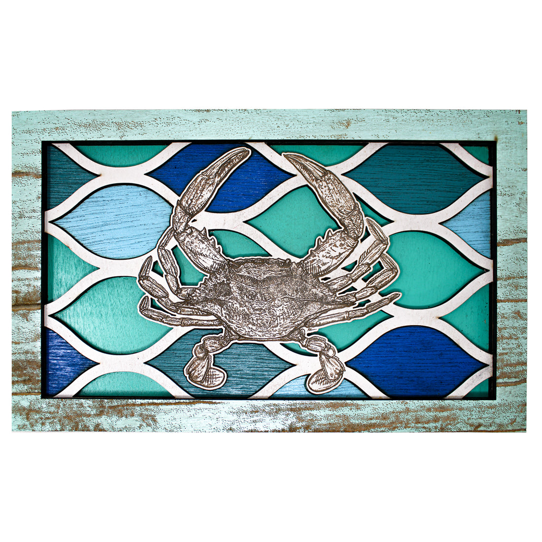 This custom crafted 3D wood wall art decor was created using one of Matt Herman’s Blue Crab...