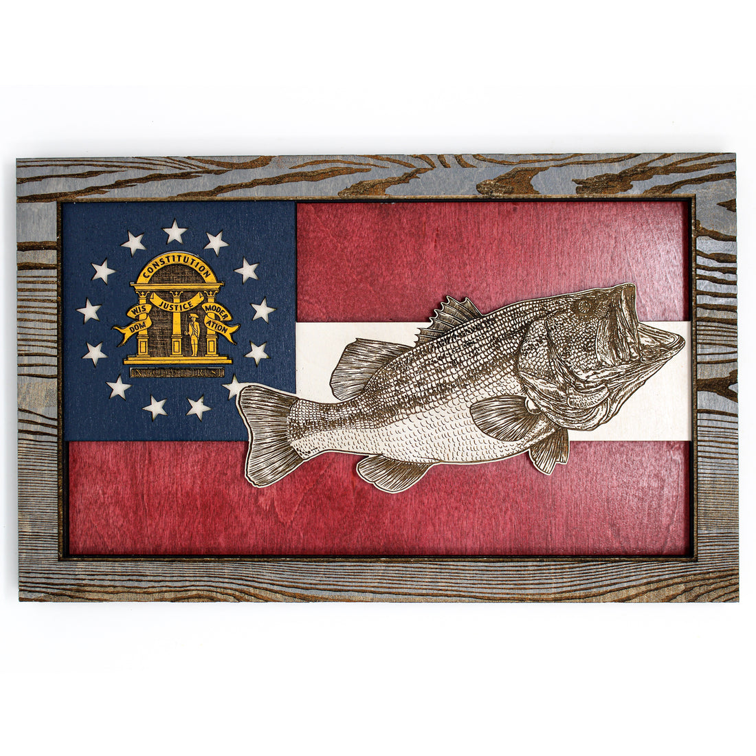 Wall Art - Large Mouth Bass Georgia Flag 3D Wood Art
