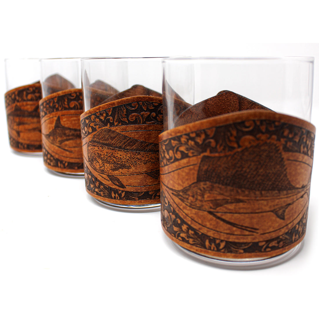 Whiskey Glass Leather Wrap - Large Mouth Bass Rocks Glass Set