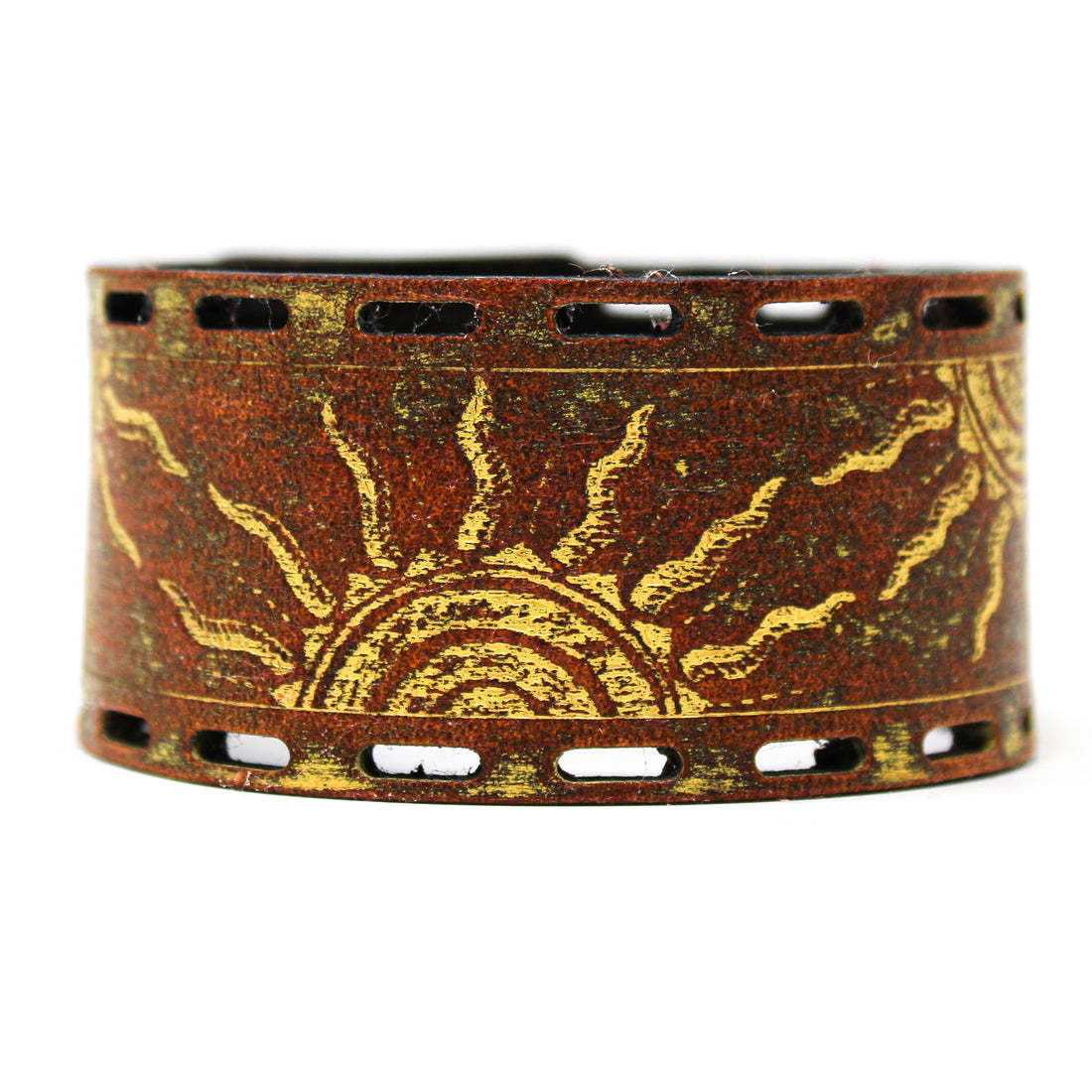 Línea atrevida pero elegante de puños gruesos 100% cuero con diseños grabados y cortados con...