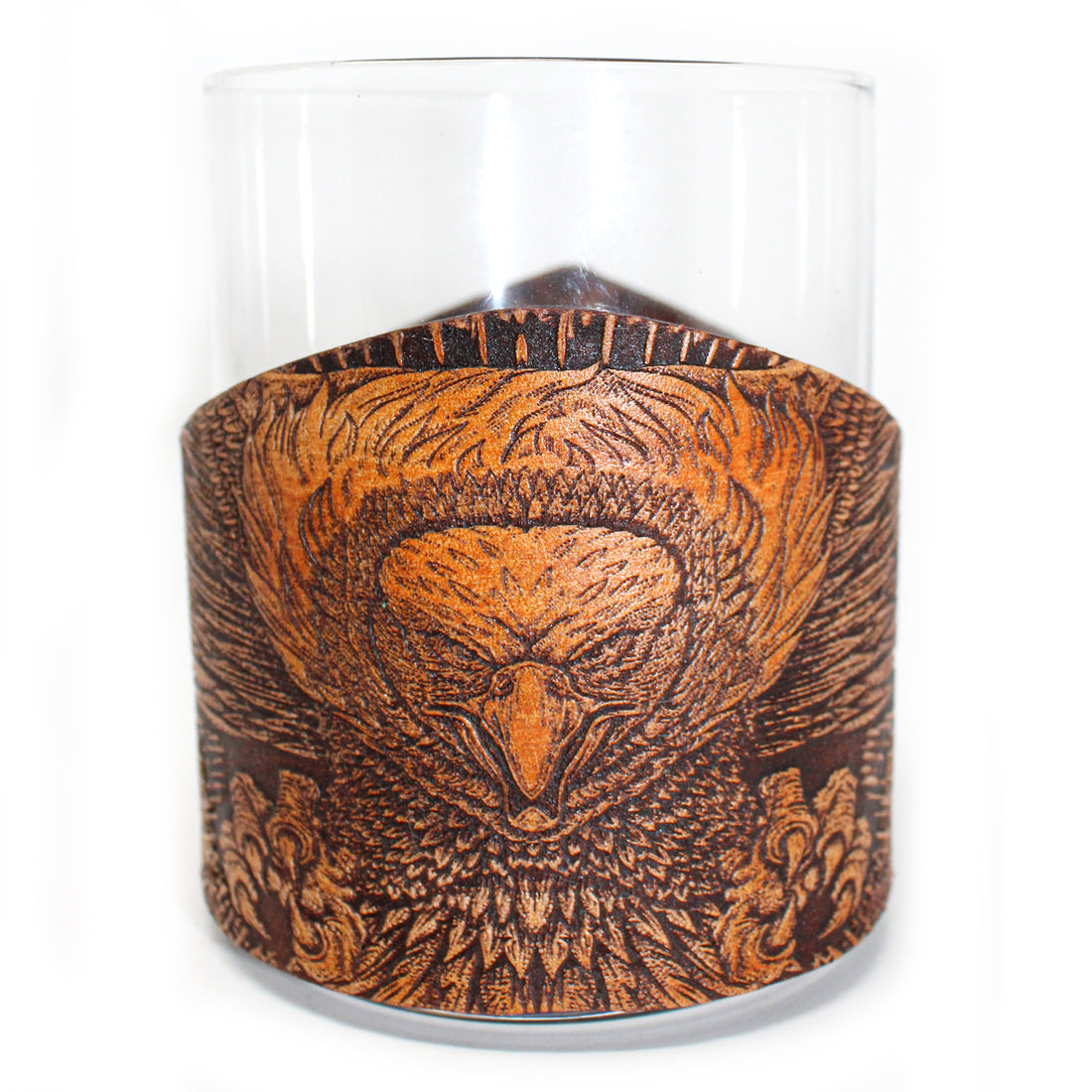 Envoltura de cuero para vaso de whisky - Vidrio IGWT Eagle Engraver