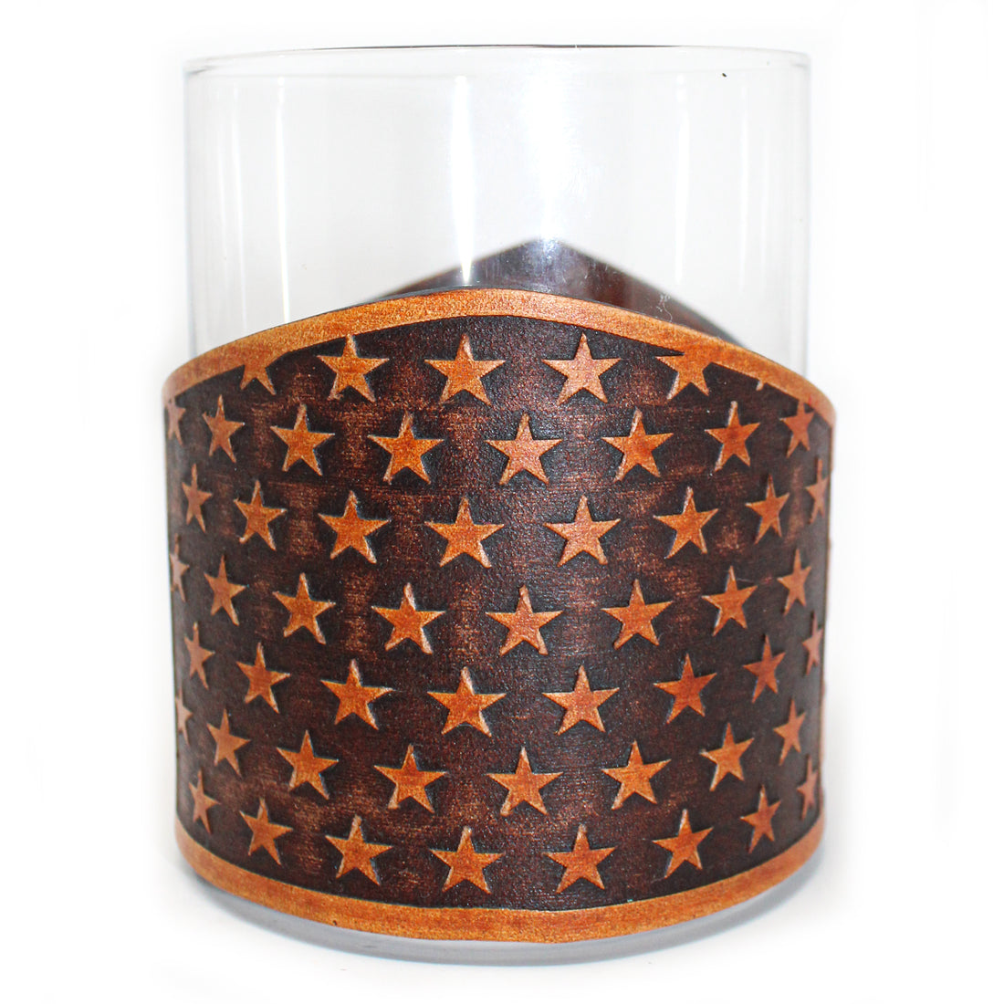 Envoltura de cuero para vaso de whisky - Vaso grabador horizontal de estrellas y barras