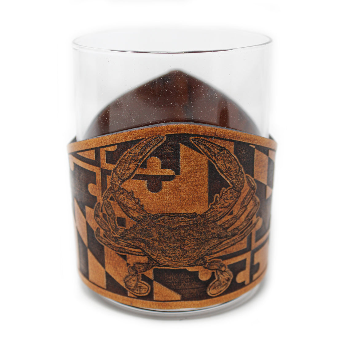 Envoltura de cuero para vaso de whisky - Vidrio grabador de cangrejo azul estilo MD