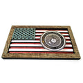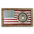 Este arte de pared de madera en 3D hecho a medida se creó utilizando uno de los conceptos de diseño originales de Matt Herman que tiene el Sello de los Marines como punto focal con la Bandera Estadounidense como telón de fondo. Luego, el arte se programa mediante complejos procesos de grabado láser para garantizar detalles de alta calidad. El marco del borde de madera flotante, muy desgastado, se hizo a medida para esta serie. Cada pieza está diseñada con 3 capas de madera enchapada de abedul que muestran colores teñidos a mano de rojo granero, blanco lavado y tonos azul marino desgastados, lo que hace que cada una sea única a su manera . Orgullosamente hecho en Tallahassee, FL. EE.UU