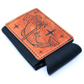 Esta es una de nuestras mejores series de fundas para bebidas con parches de cuero grandes. Totalmente construido desde cero. Usando tela de neopreno gruesa como forro interior para estirar la memoria y luego enmarcando con 2 parches decorativos de cuero grandes de 5-7 oz en ambos lados para agregar soporte. Teñido a mano y angustiado a mano haciendo que cada uno sea único. Una excelente apariencia general que no solo será un excelente identificador de su bebida, sino también un excelente iniciador de conversación.