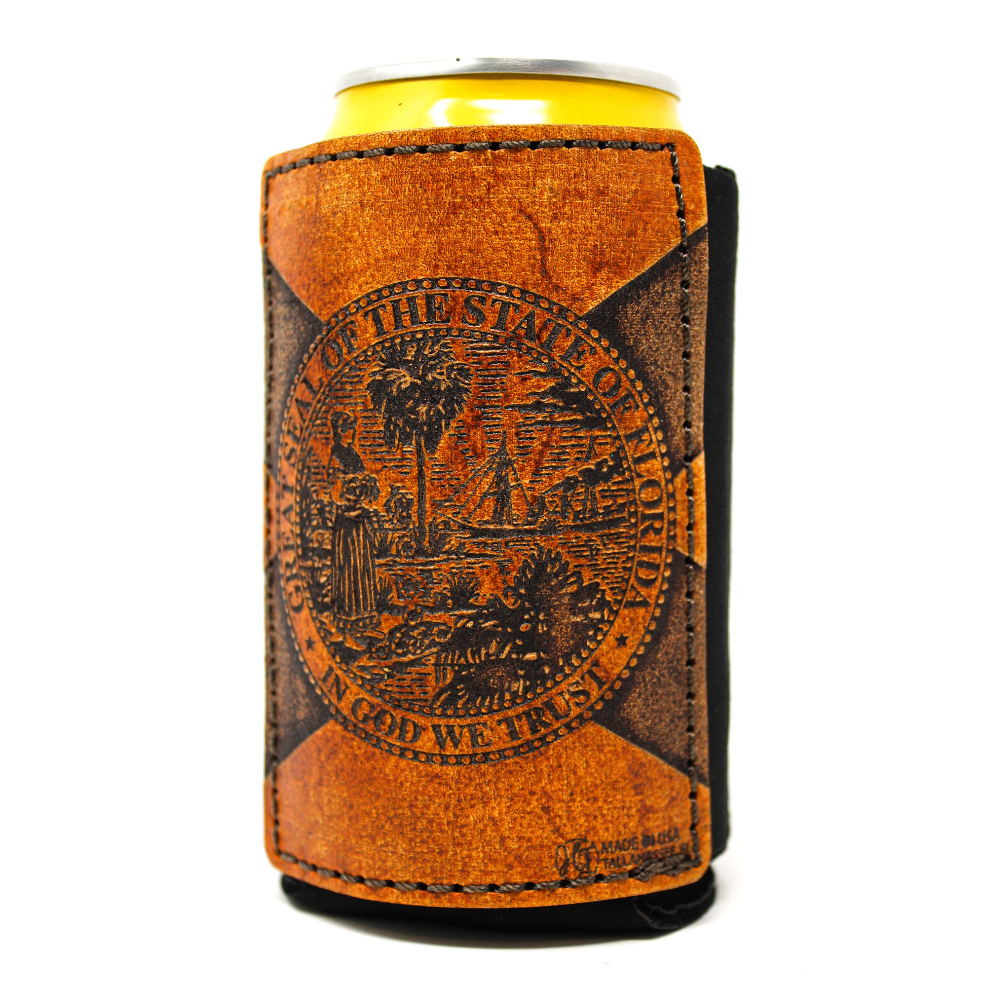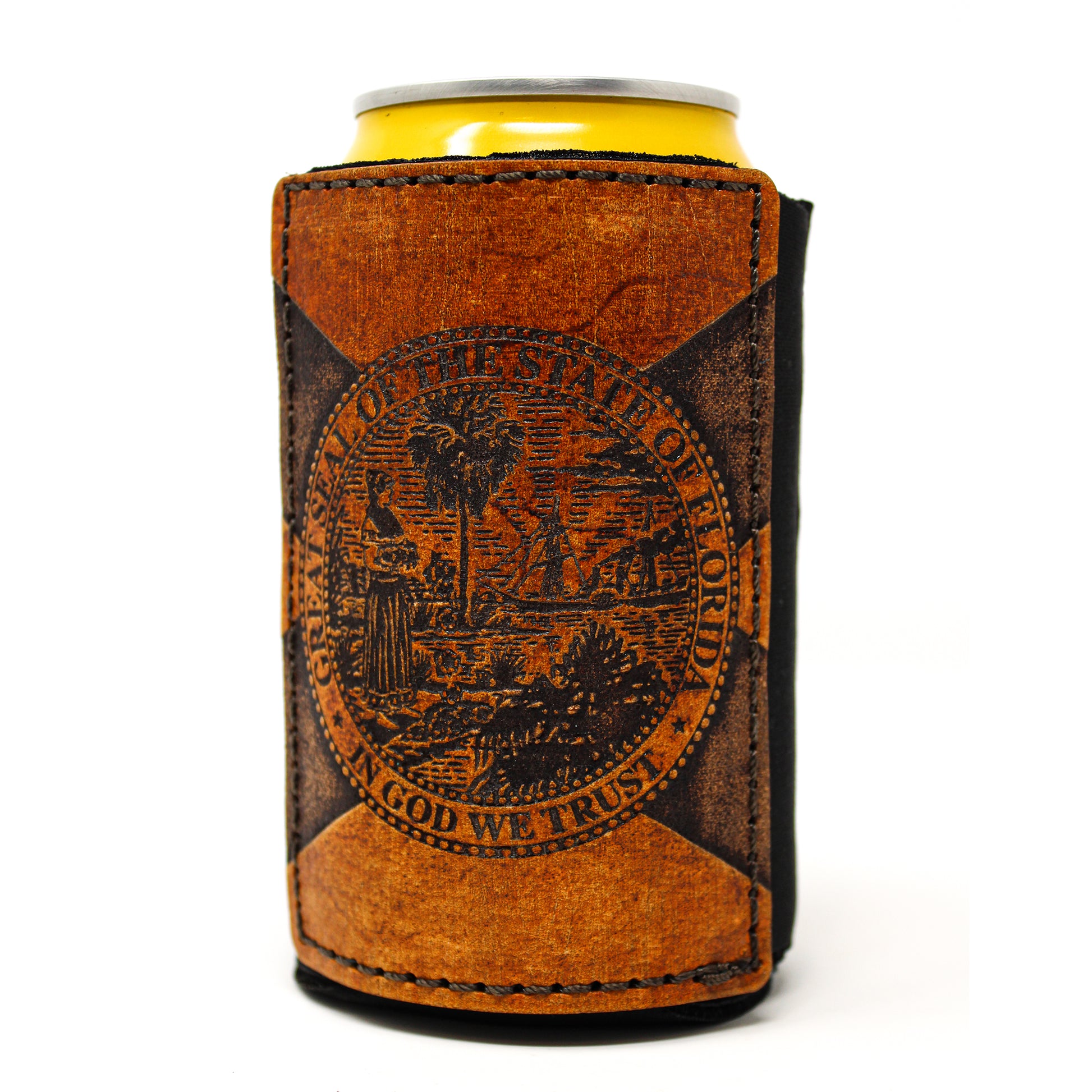 Esta funda para bebida presenta la gran bandera de Florida. Fabricado con orgullo en Tallahassee, FL, EE. UU.