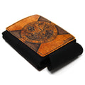 Esta es una de nuestras mejores series de fundas para bebidas con parches de cuero grandes. Totalmente construido desde cero. Usando tela de neopreno gruesa como forro interior para estirar la memoria y luego enmarcando con 2 parches decorativos de cuero grandes de 5-7 oz en ambos lados para agregar soporte. Teñido a mano y angustiado a mano haciendo que cada uno sea único. Una excelente apariencia general que no solo será un excelente identificador de su bebida, sino también un excelente iniciador de conversación.