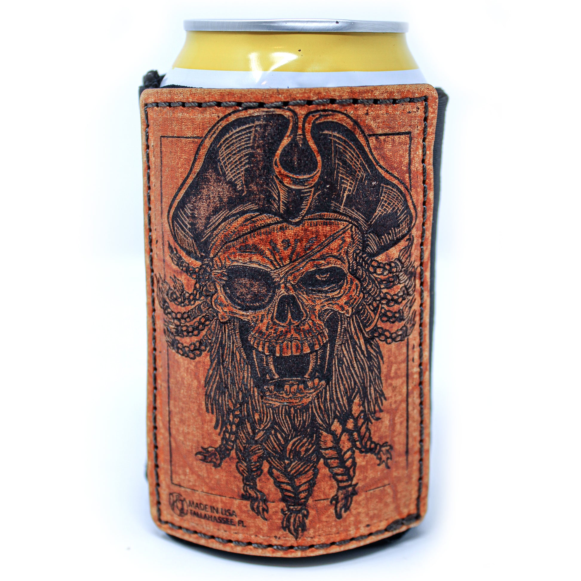Esta funda para bebida presenta la ilustración de Matt Herman de una cabeza de calavera pirata. ¡Puedes encontrar este diseño utilizado para prendas de vestir en Reel Life! Fabricado con orgullo en Tallahassee, FL, EE. UU.