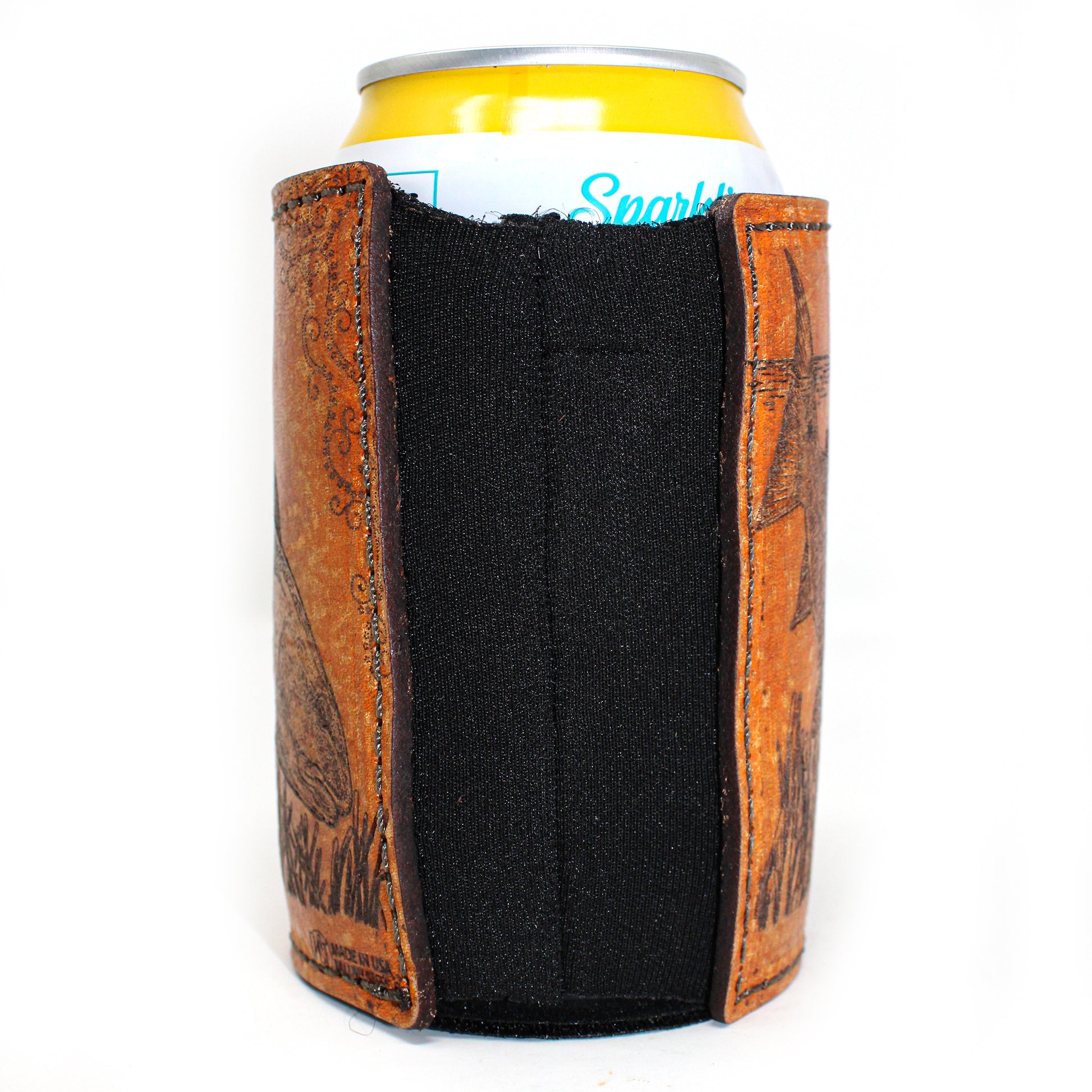 Esta es una de nuestras mejores series de fundas para bebidas con parches de cuero grandes. Totalmente construido desde cero. Usando tela de neopreno gruesa como forro interior para estiramiento con memoria y luego enmarcando con 2 parches decorativos de cuero grandes de 5-7 oz en ambos lados para agregar soporte. Teñido a mano y angustiado a mano haciendo que cada uno sea único. Una excelente apariencia general que no solo será un excelente identificador de su bebida, sino también un excelente iniciador de conversación.