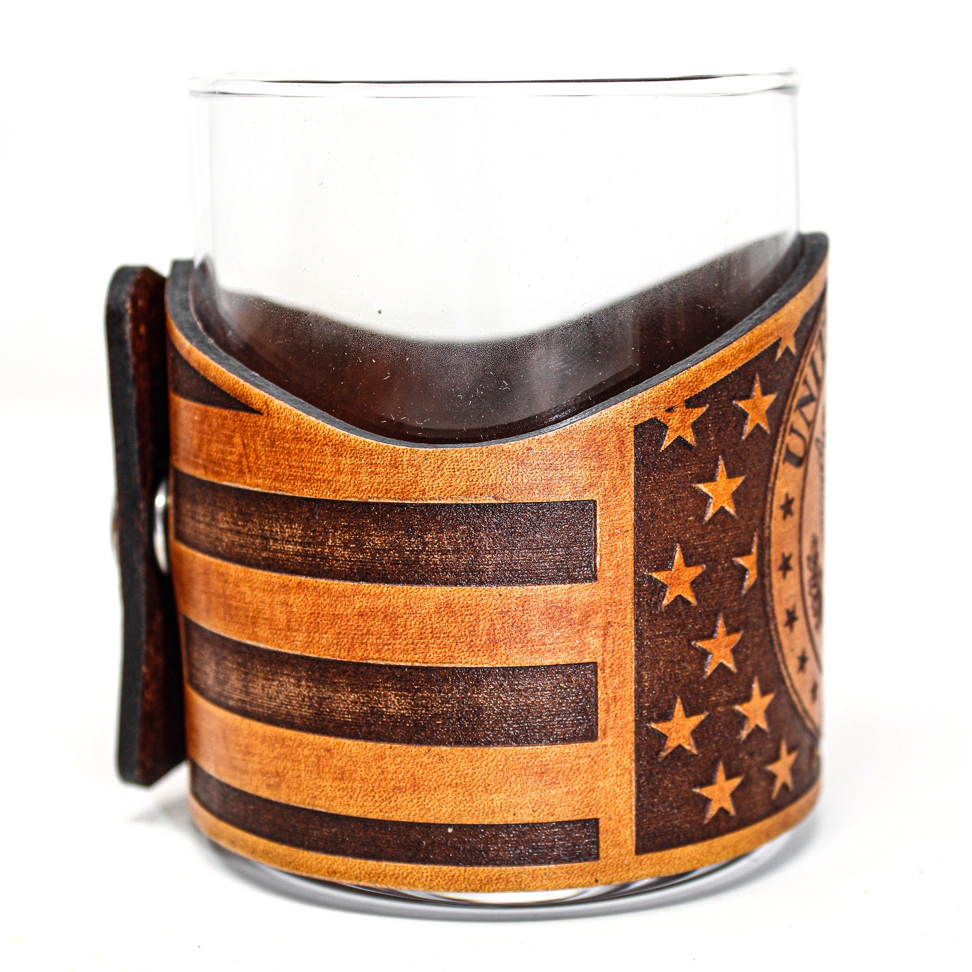 Para el conocedor patriótico: nuestros vasos de whisky forrados en cuero de la colección Patriot están diseñados para personas que se enorgullecen de su herencia estadounidense. Como regalo único o capricho personal, estas copas celebran los valores que definen nuestra nación. Ya sea que esté brindando por la libertad, la camaradería o la búsqueda de la felicidad, estos vasos hechos a mano son los compañeros perfectos para celebrar con amigos. Abraza el espíritu americano en cada sorbo y eleva tus momentos de alegría con un toque de clase y patriotismo. ¡Salud por probar el sueño americano!