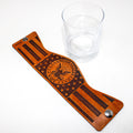 Nuestra serie Military consta de una gran variedad de wraps americanos con vasos bajos de 11 oz. Este estilo está decorado con un sello NAVY colocado sobre la bandera estadounidense. Utiliza cuero grueso de 7 a 10 oz con grabado láser programado de precisión y se sujeta con un resistente broche de acero inoxidable de grado marino. Este concepto de diseño hace que las envolturas de cuero sean fáciles de desabrochar para fines de limpieza o simplemente para guardarlas y cambiarlas por otro estilo de envoltura. Todo el cuero está teñido, desgastado y acabado a mano, lo que le da a cada pieza su propio aspecto único.
