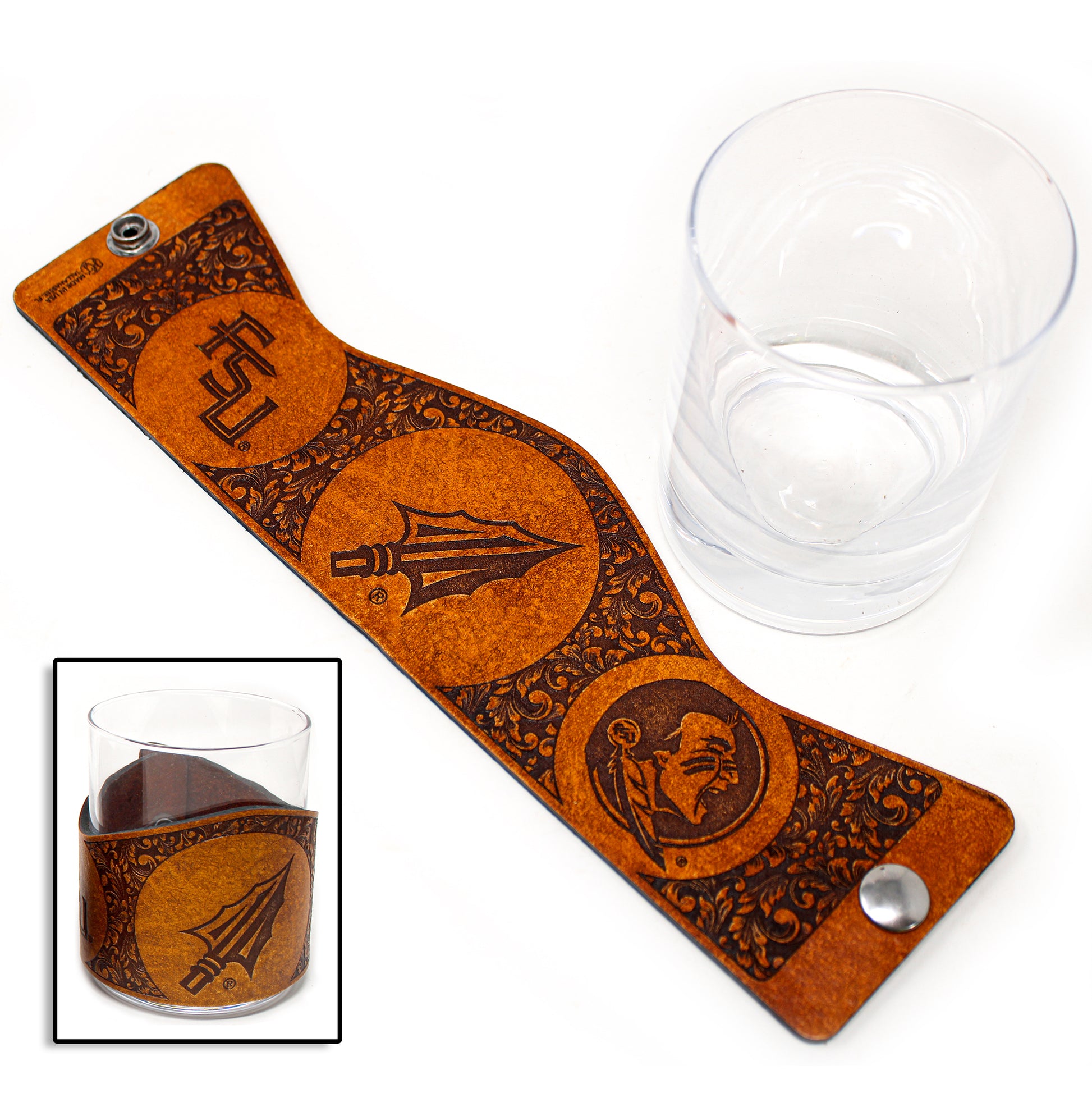 Nuestra serie FSU consta de una gran variedad de envoltorios de marca con licencia con vasos bajos de 11 oz. Este estilo está decorado con el LAB ilustrado con Mallards en ambos lados y luego enmarcado con un patrón clásico de grabadores de rifle. Utiliza cuero grueso de 7 a 10 oz con grabado láser programado de precisión y se sujeta con un resistente broche de acero inoxidable de grado marino. Este concepto de diseño hace que las envolturas de cuero sean fáciles de desabrochar para fines de limpieza o simplemente para guardarlas y cambiarlas por otro estilo de envoltura. Todo el cuero está teñido, desgastado y acabado a mano, lo que le da a cada pieza su propio aspecto único.