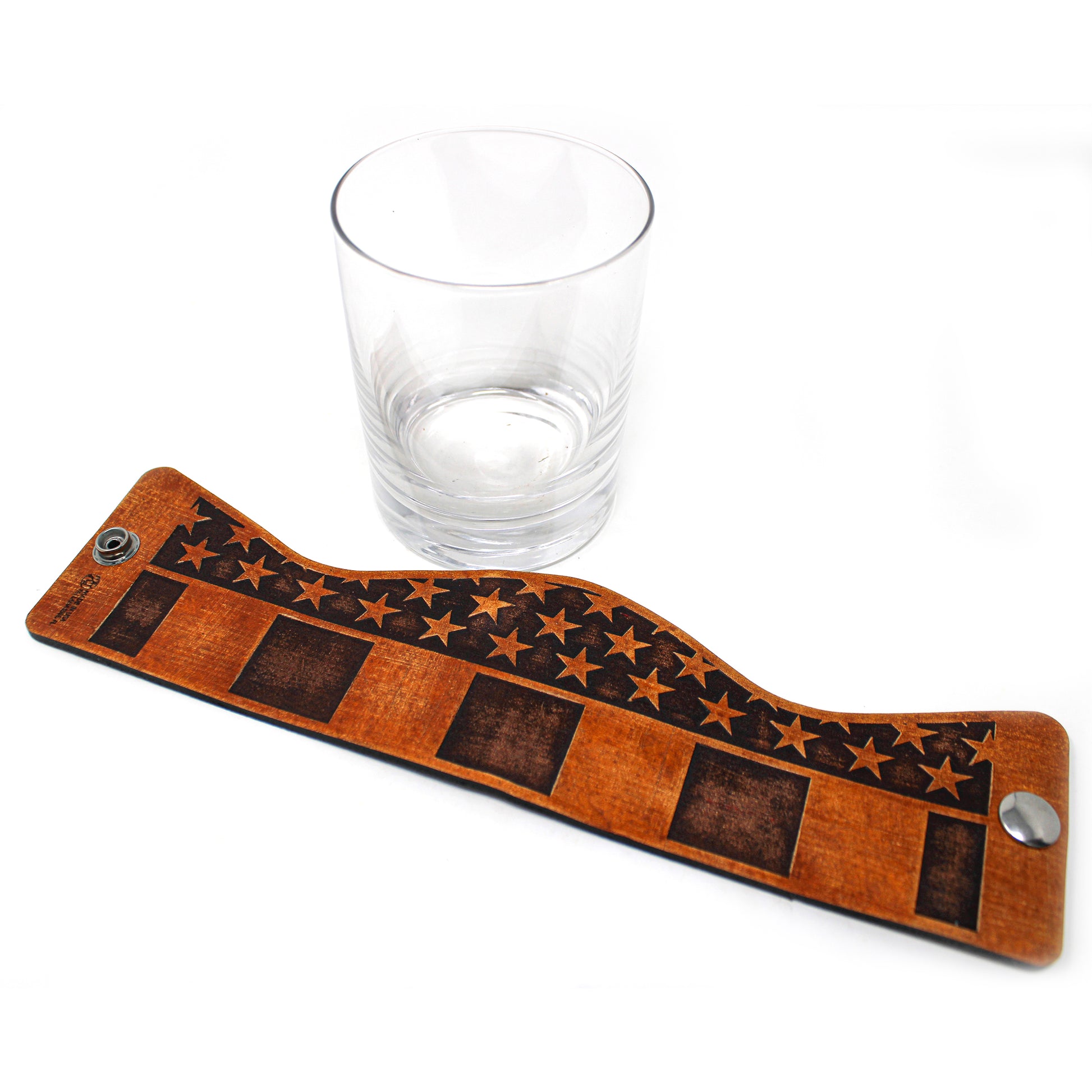 Nuestra serie Patriotic consta de una gran variedad de wraps americanos con vasos bajos de 11 oz. Utiliza cuero grueso de 7 a 10 oz con grabado láser programado de precisión y se sujeta con un resistente broche de acero inoxidable de grado marino. Este concepto de diseño hace que las envolturas de cuero sean fáciles de desabrochar para fines de limpieza o simplemente para guardarlas y cambiarlas por otro estilo de envoltura. Todo el cuero está teñido, desgastado y acabado a mano, lo que le da a cada pieza su propio aspecto único.