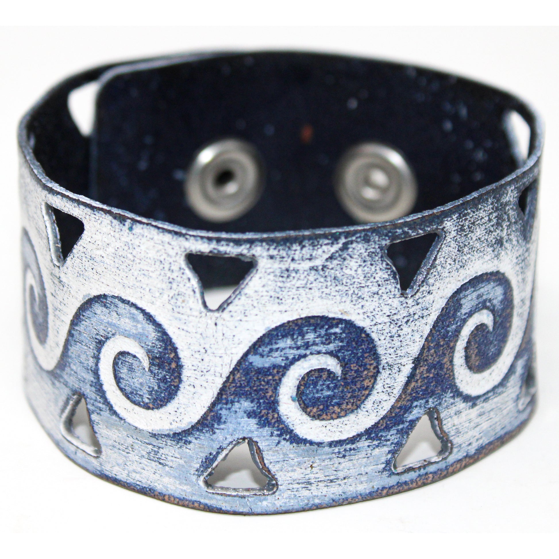 Diseño simple pero elegante con cortes y diseño de maremotos rítmicos. Hecho de 100% cuero con un grosor estándar de 4 a 6 oz. Con broches de acero inoxidable para aquellos días de diversión en la playa bajo el sol. Vea las opciones de tintes de colores actuales para elegir.