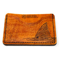 Hand stained. Hand distressed. Each wallet is unique in it's own way. A great rugged look! Using one of Matt Herman’s illustrated Redfish... Balanced with a simple rifle engraving style element.