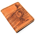 Hand stained. Hand distressed. Each wallet is unique in it's own way. A great rugged look! Using one of Matt Herman’s rainbow trout checking out that fly whipping around above the stream flow.