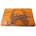 Hand stained. Hand distressed. Each wallet is unique in it's own way. A great rugged look! Using Matt Herman’s illustrated Tarpons with a rifle engraving style to frame them.