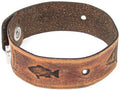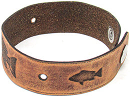 Men's Leather Wristband Series. Fishing inspired illustrated laser engraved 100% leather bracelet designs with Artisan hand finished treatments. Featuring stainless steel snaps for those fun in the sun days on the beach or taking the boat out for the day. Proudly made in Tallahassee, FL USA.