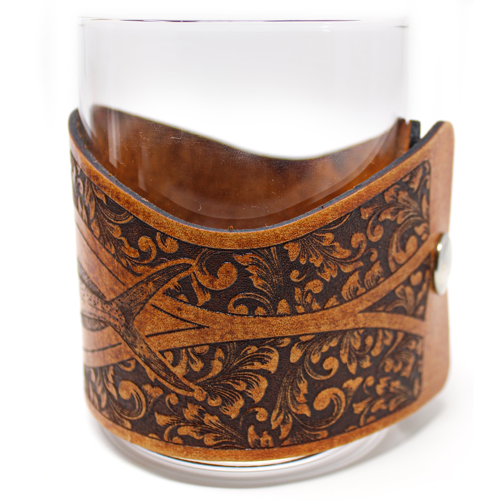 Elevate your drinking experience with our Leather-Wrapped Whiskey Glasses – a perfect fusion of craftsmanship and celebration. Immerse yourself in the luxurious feel of genuine leather, adorned with sophisticated illustrations. Uniquely crafted, this is the ideal gift for those who celebrate hunting and fishing, bringing a touch of artistry to every toast and shared moment with friends.