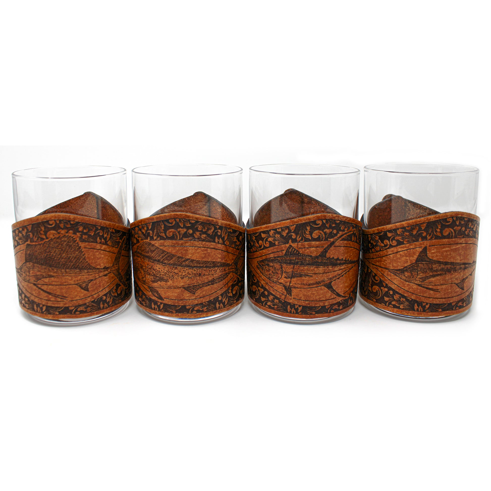 Elevate your drinking experience with our Leather-Wrapped Whiskey Glasses – a perfect fusion of craftsmanship and celebration. Immerse yourself in the luxurious feel of genuine leather, adorned with sophisticated illustrations. Uniquely crafted, this is the ideal gift for those who celebrate hunting and fishing, bringing a touch of artistry to every toast and shared moment with friends.