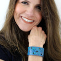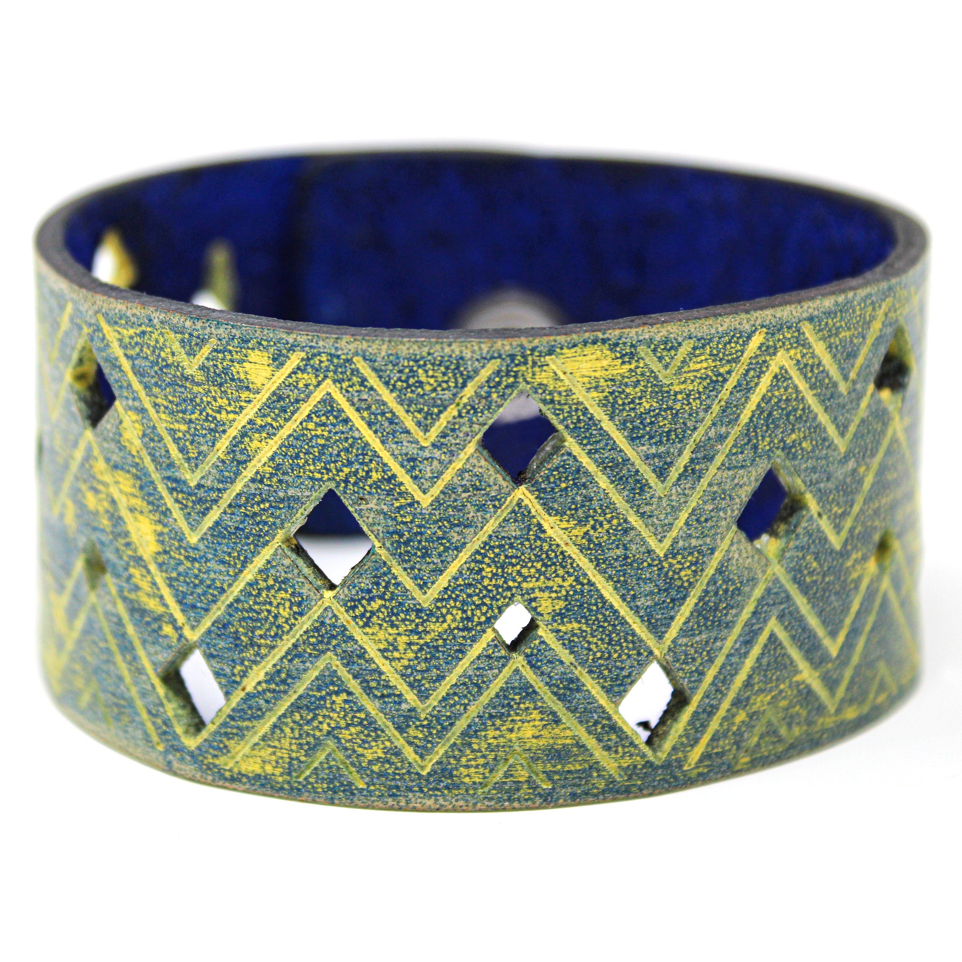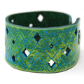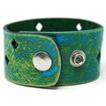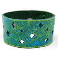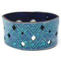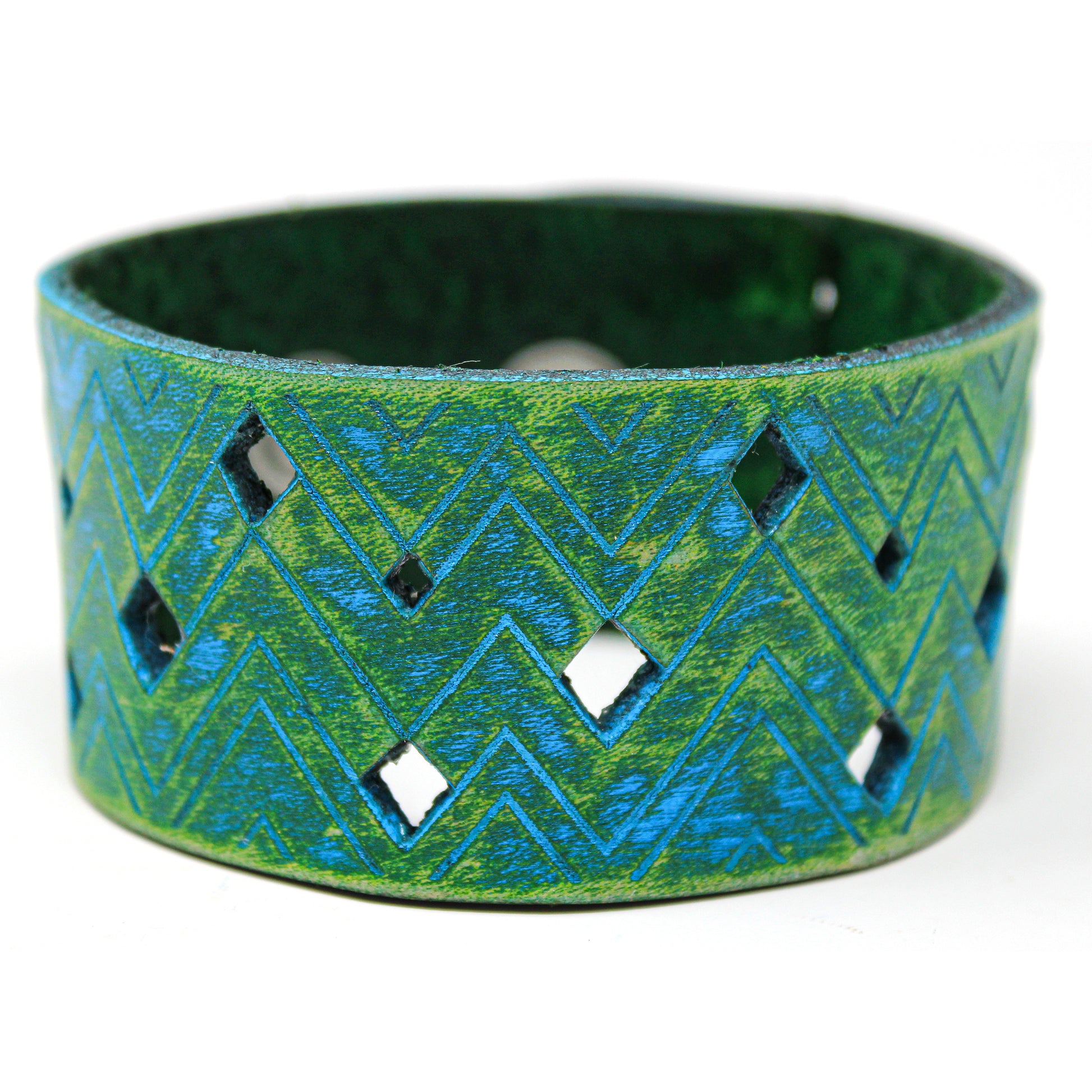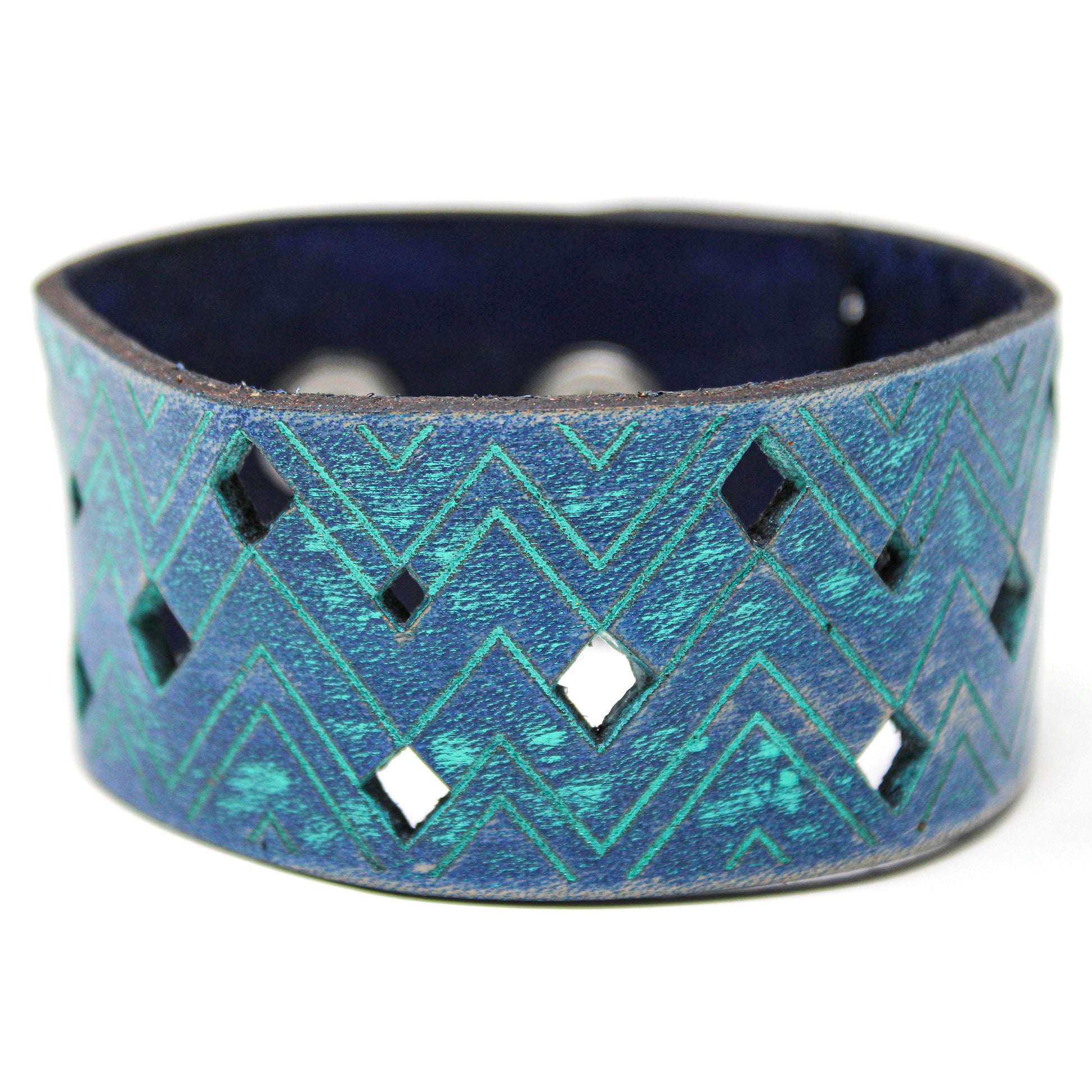 Simple, but elegant design featuring electric energy lines pulsing around the diamond cuts. Made of 100% leather with standard 4-6 oz thickness. Featuring stainless steel snaps for those fun in the sun days on the beach. See current color dye choices to choose from.
