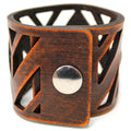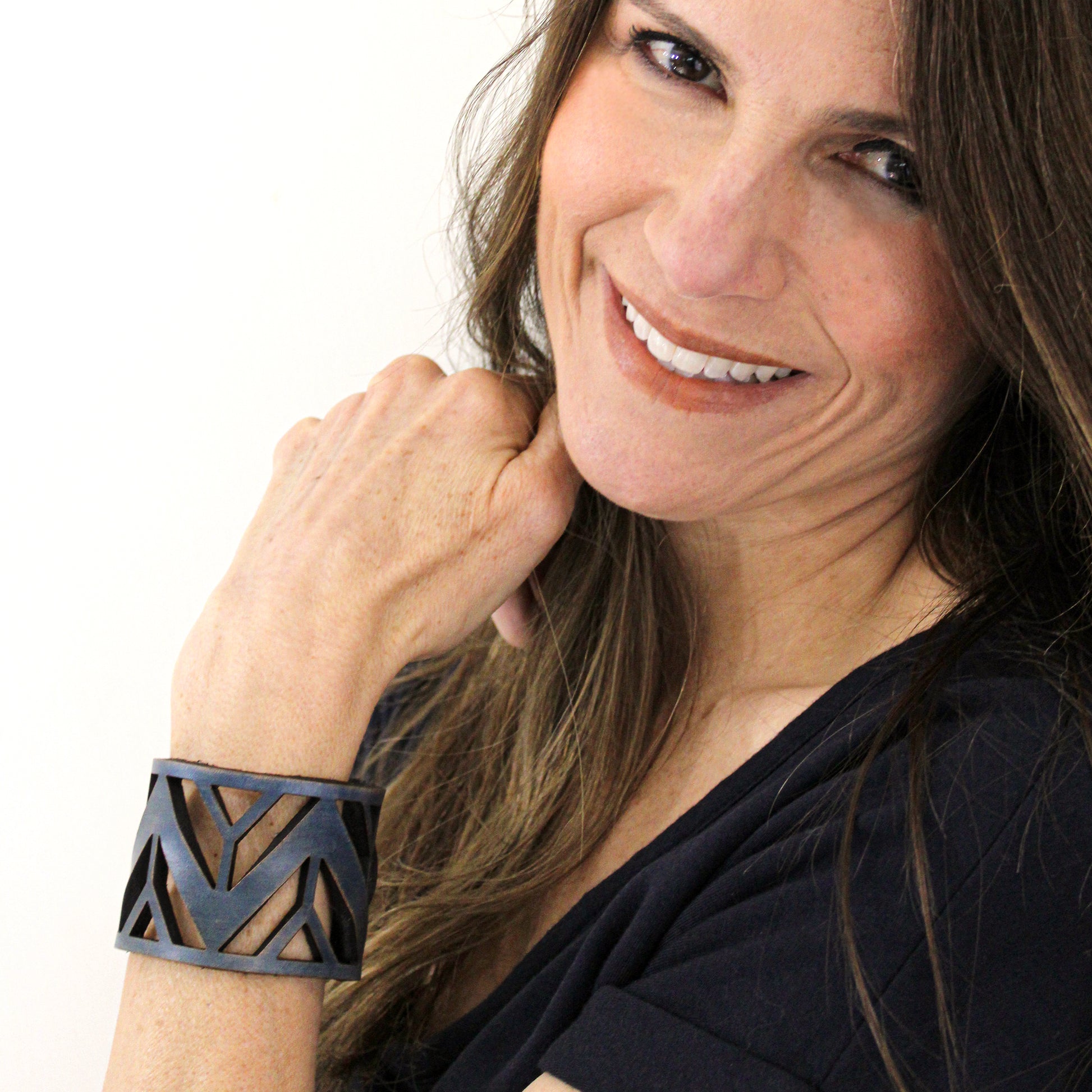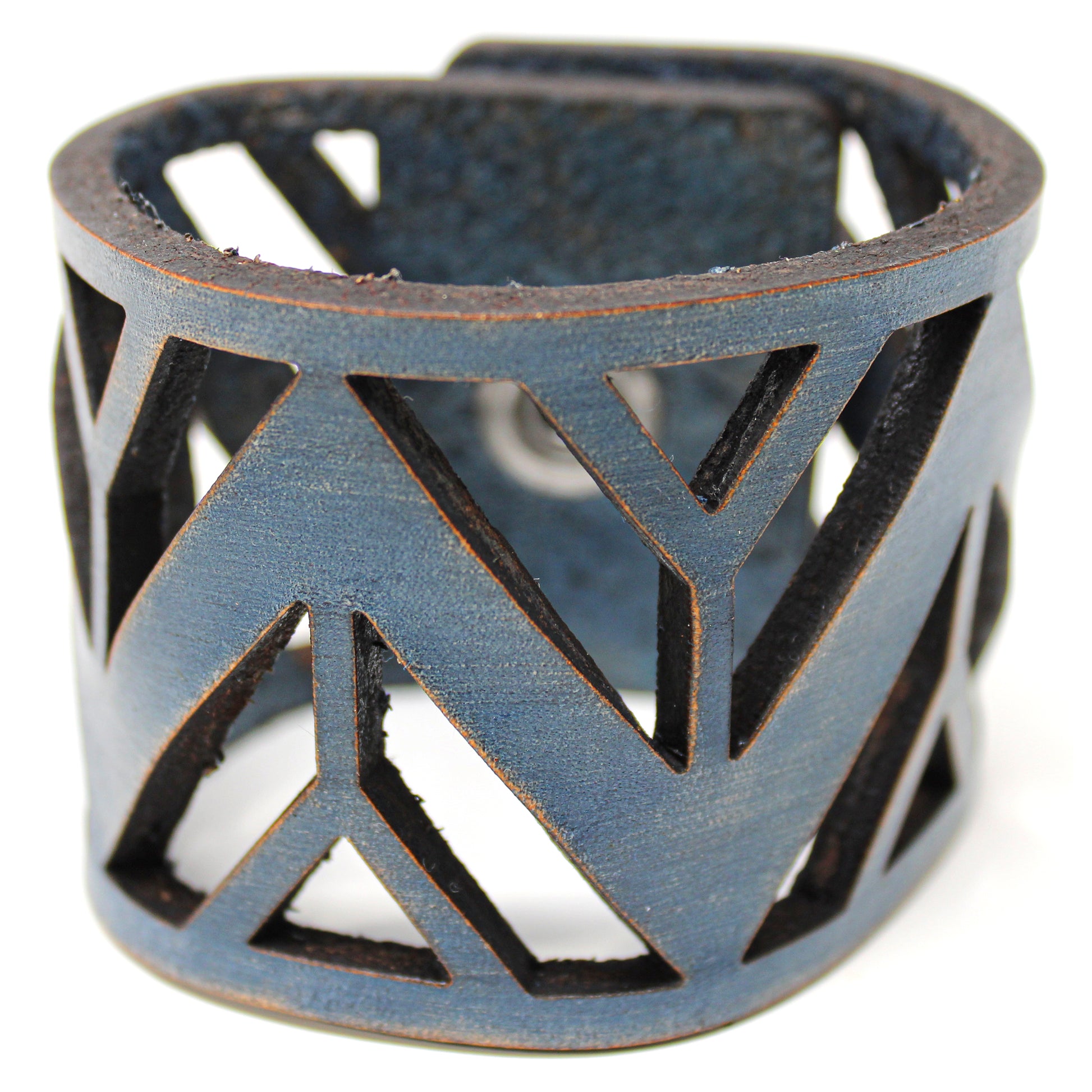 Simple, but elegant line of thick 100% leather Cuffs with laser engraved and cut designs featuring pattern designs that remind us of the mountains. Artisan hand finished treatments. Featuring stainless steel snaps for those fun in the sun days on the beach. Proudly made in Tallahassee, FL USA.