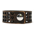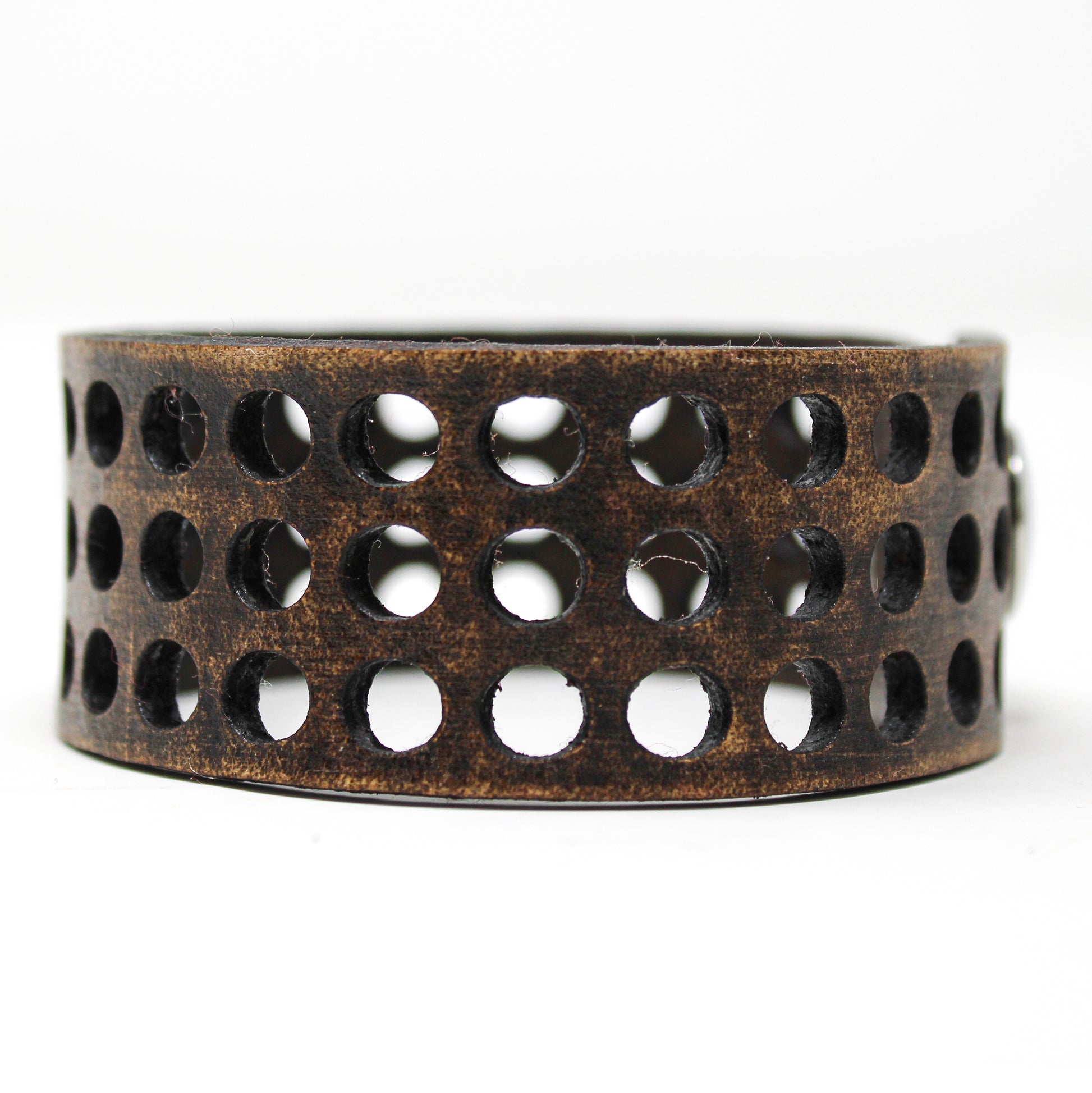 Simple, but elegant line of thick 100% leather Cuffs with laser engraved and cut designs. Artisan hand finished treatments. Featuring stainless steel snaps for those fun in the sun days on the beach. Proudly made in Tallahassee, FL USA.