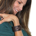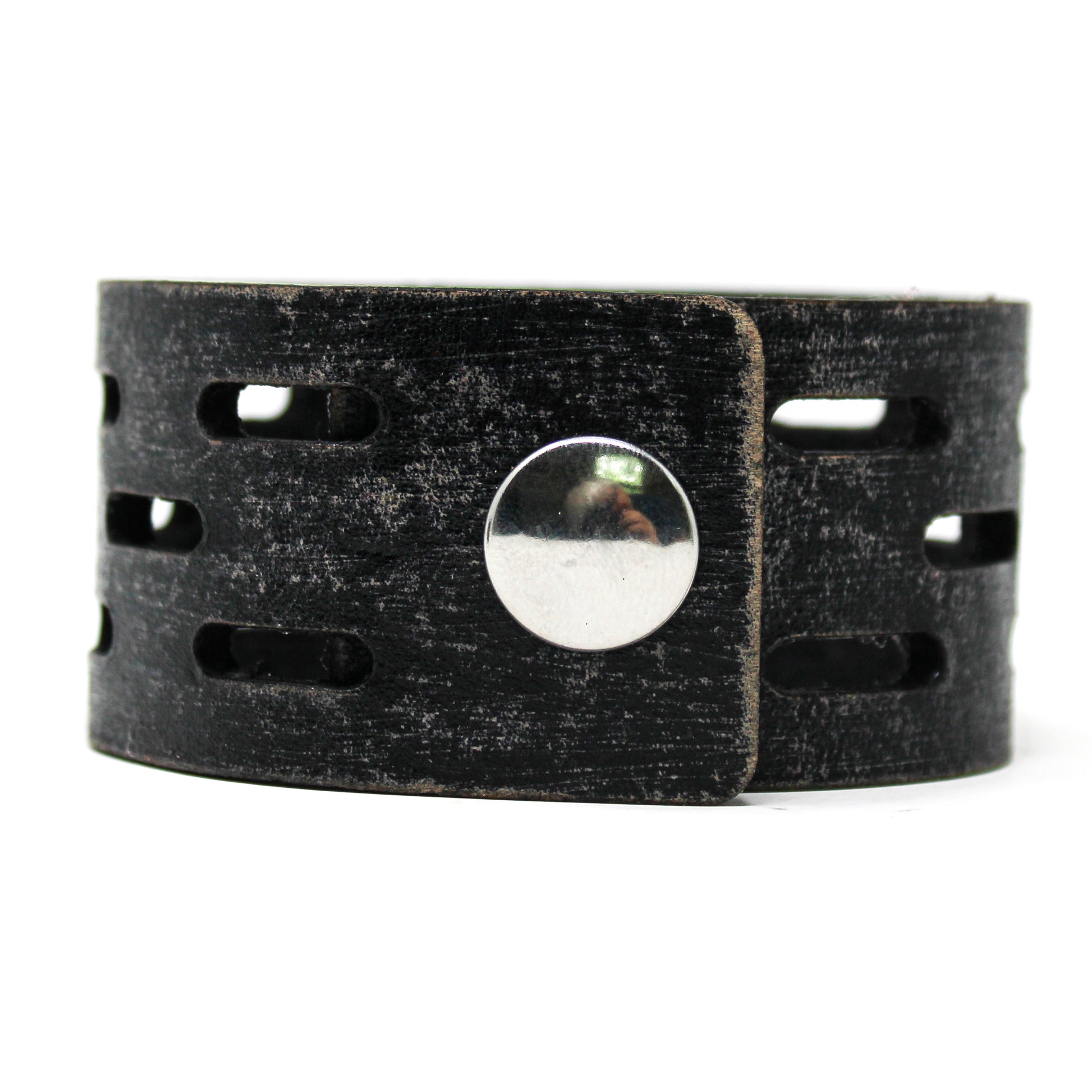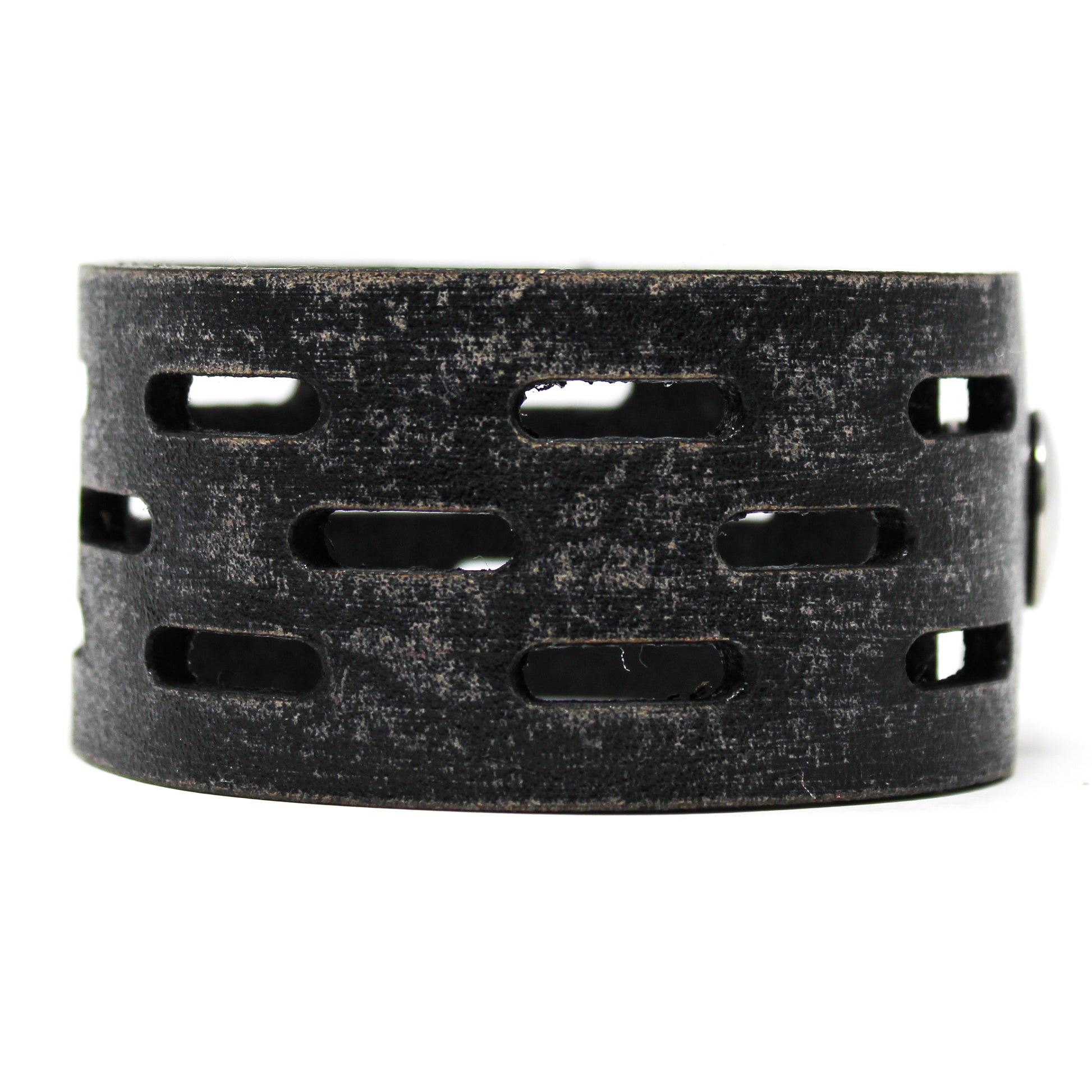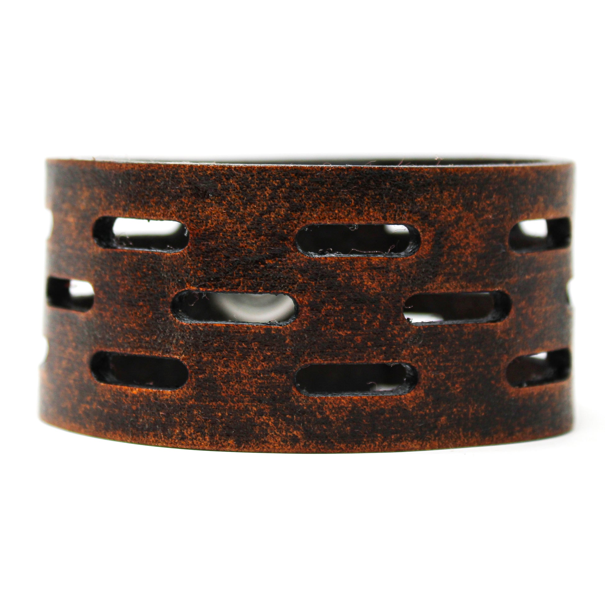 Simple, but elegant line of thick 100% leather Cuffs with laser engraved and cut designs. Artisan hand finished treatments. Featuring stainless steel snaps for those fun in the sun days on the beach. Proudly made in Tallahassee, FL USA.