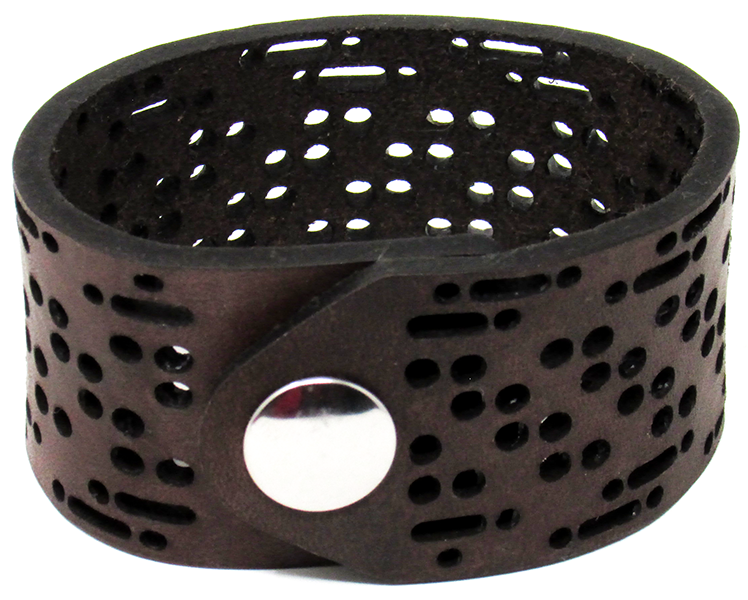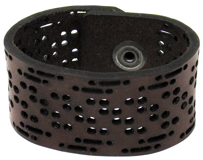 Simple, but elegant line of thick 100% leather Cuffs with laser engraved and cut designs. Artisan hand finished treatments. Featuring stainless steel snaps for those fun in the sun days on the beach. Proudly made in Tallahassee, FL USA.