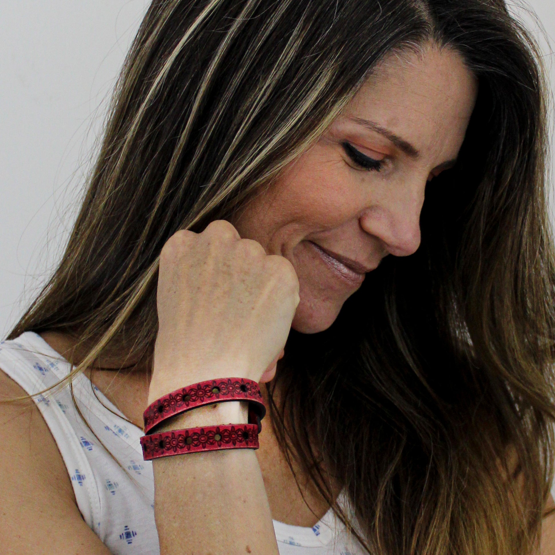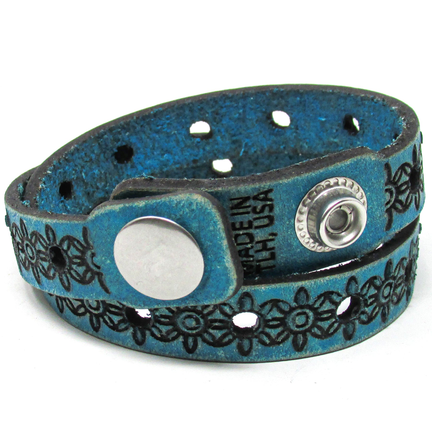 Simple, but elegant design featuring a sunburst repeat pattern. Made of 100% leather with standard 4-6 oz thickness. Featuring stainless steel snaps for those fun in the sun days on the beach. Proudly made in Tallahassee, FL USA.