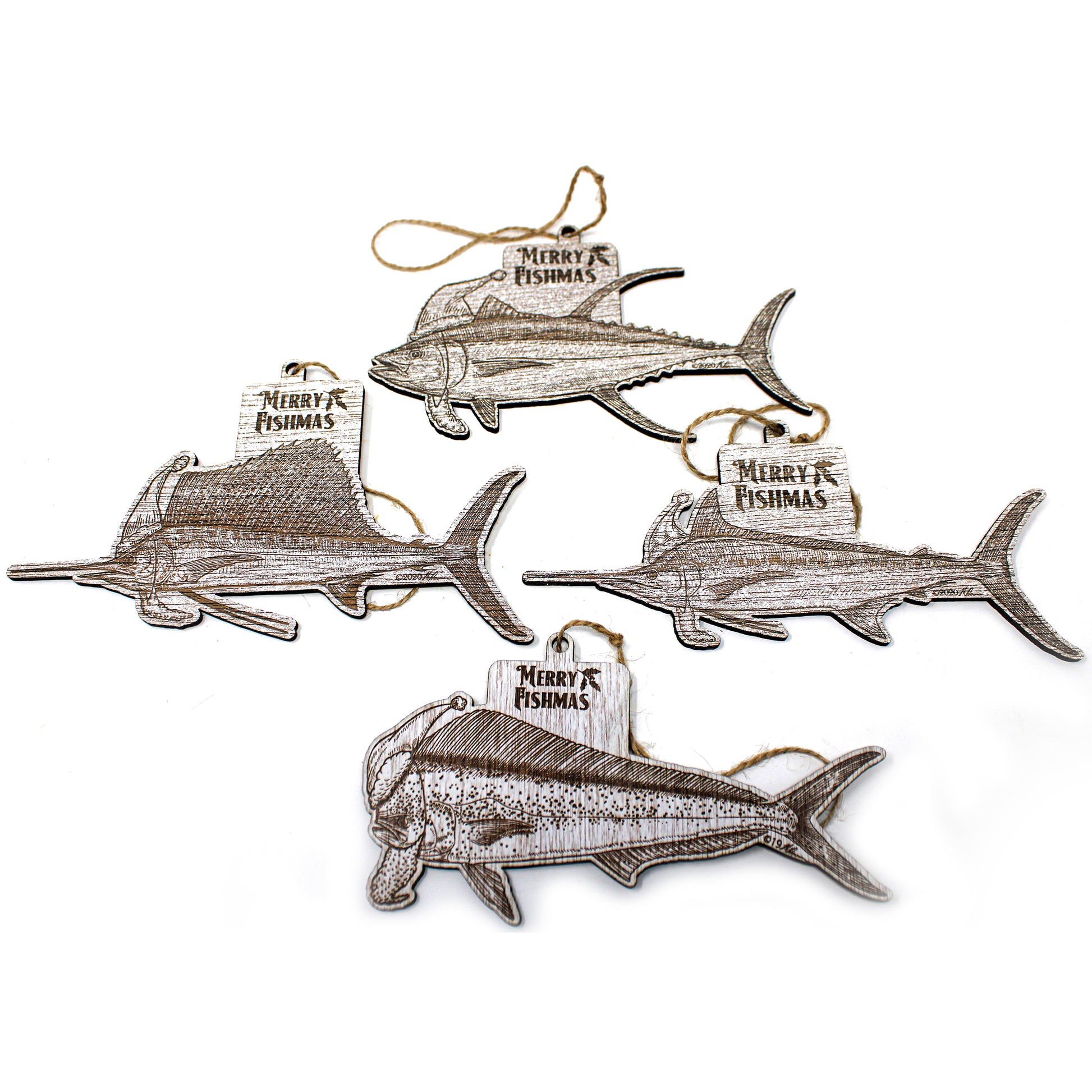 Merry Fishmas to all the offshore fishing folks in our lives. Happy to celebrate the Holiday spirit while celebrating what we do!!! Each fish Christmas ornament is illustrated by artist Matt Herman. Made from birch veneer wood and hand finished with white stain and a natural rope twine. Proudly Made in Tallahassee, FL USA.